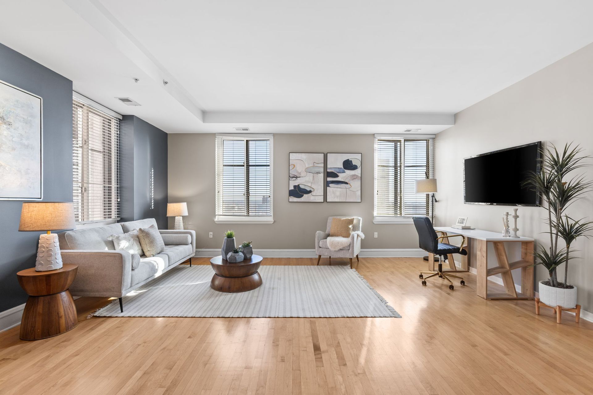 - Skyline Views | Enjoy sweeping downtown views and tons of natural light from your large windows.