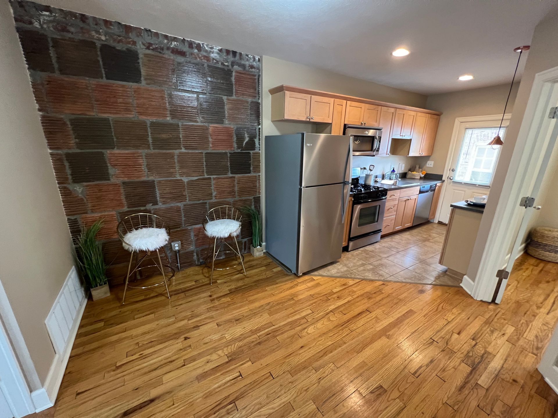 - Gorgeous Renovations Throughout | Stylish interiors featuring exposed brick walls and sleek hardwood floors for a timeless yet modern feel.